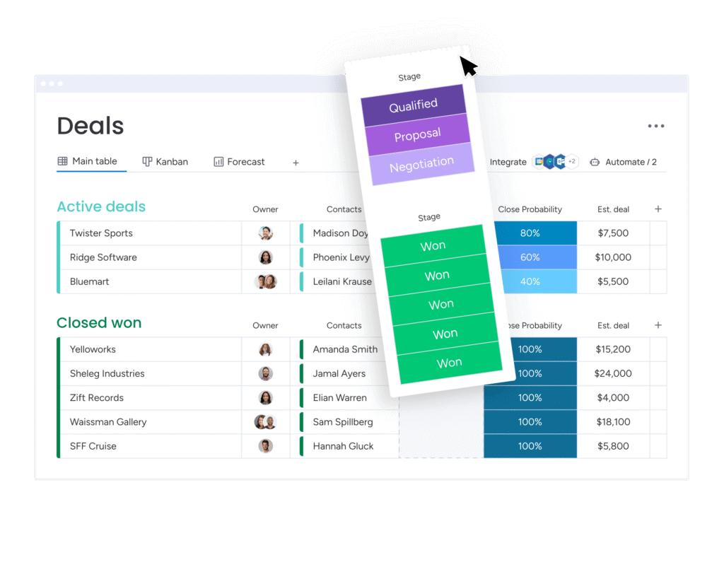 Let us handle the heavy lifting by automating workflows and integrating monday CRM with your existing systems.